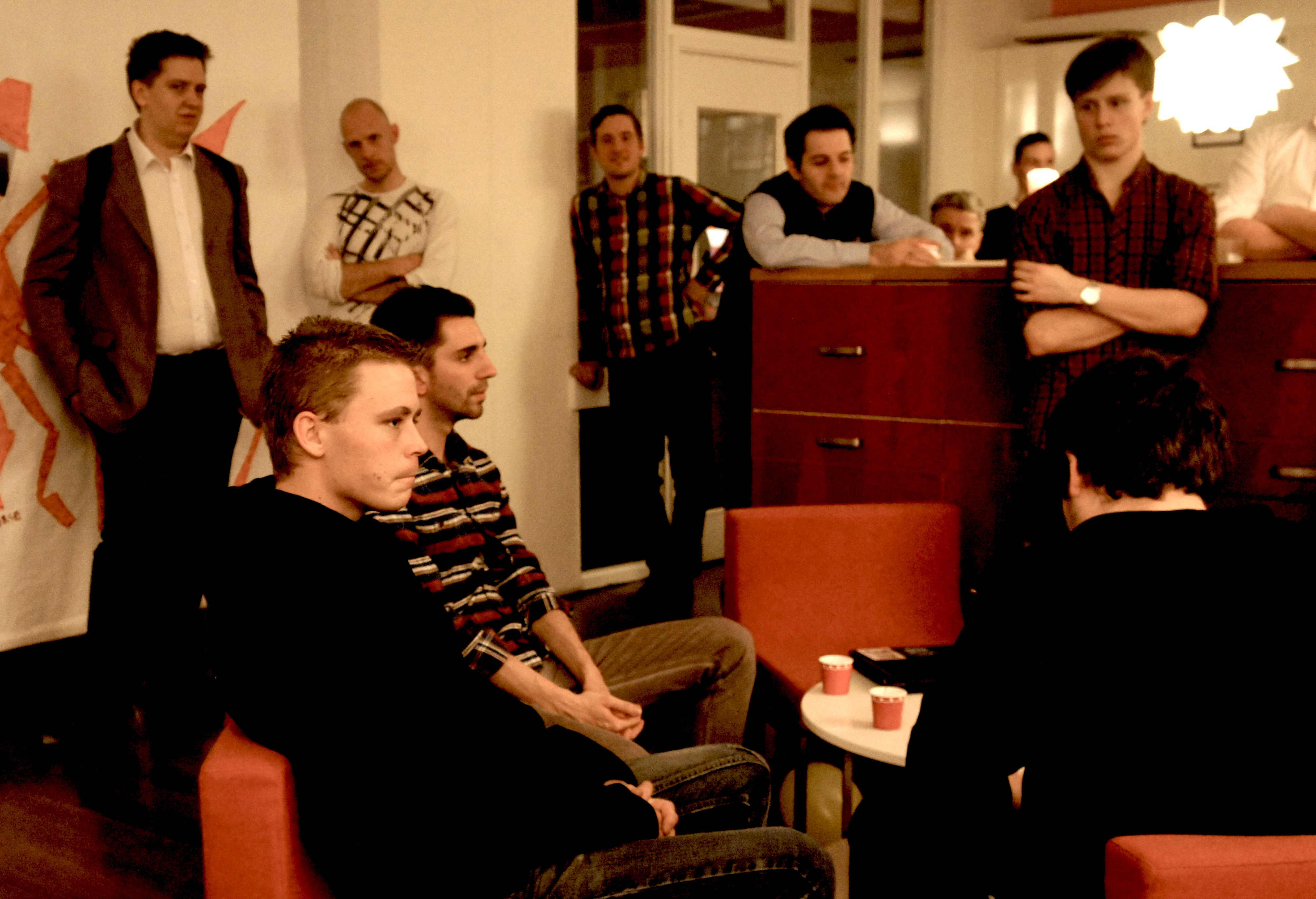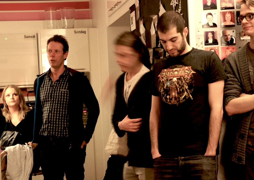 20:00-20:30 Alla medlemmar presenterade sig spontant och kort med en ”30-sekunderspresentation”. En blandad skara med bland annat: mjukvaruutvecklare, grafiker, arkitekter, läkare, industridesigners, studenter, forskare, ingenjörer
